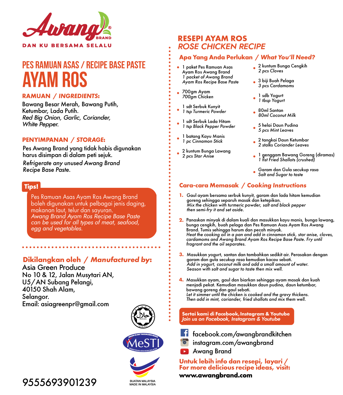 Tips Awang brand recipe base is also suitable for beef and fish.